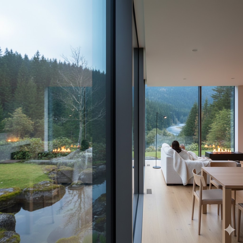 Panoramic Clarity: Our high-definition glass offers an unobstructed view, framing the outdoor landscape like a living piece of art.