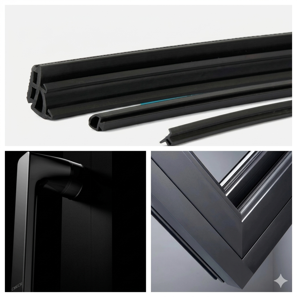 The Bosni Standard: We partner with CMECH (USA) for our hardware series, tested for over 100,000 smooth opening cycles and 500 hours of salt spray resistance. For sealing, we use Haida EPDM strips featuring integrated corner bending. These offer 3-5 times the sealing effectiveness of ordinary rubber and remain odorless and flexible over time.